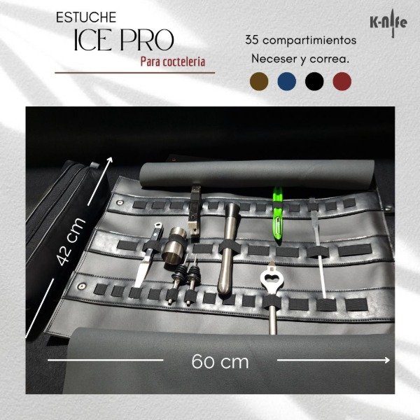 Con el modelo Ice, este estuche no solo es útil, sino que también añade un toque de estilo a tu cocina. Su diseño compacto y ligero lo hace fácil de transportar, ideal para llevar a clases de cocina, picnics o cualquier actividad al aire libre donde necesites tus herramientas de coctelería a mano.