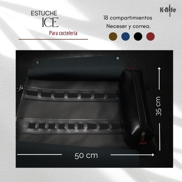 Con el modelo Ice, este estuche no solo es útil, sino que también añade un toque de estilo a tu cocina. Su diseño compacto y ligero lo hace fácil de transportar, ideal para llevar a clases de cocina, picnics o cualquier actividad al aire libre donde necesites tus herramientas de coctelería a mano.