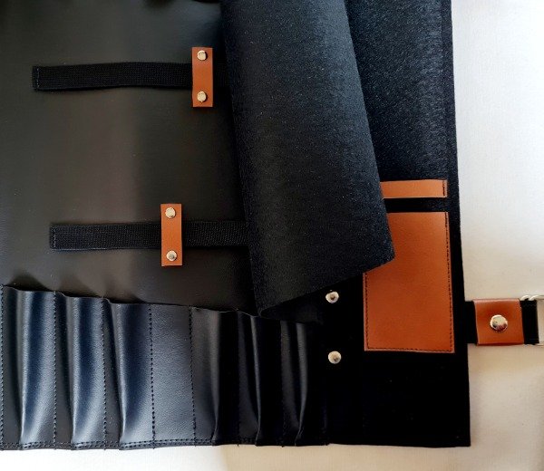 Su diseño práctico y funcional permite un fácil acceso a los cuchillos, facilitando su uso en cualquier momento. La capellada, como material principal, proporciona una estructura robusta que resiste el paso del tiempo, convirtiéndolo en un accesorio indispensable para chefs profesionales y aficionados por igual.